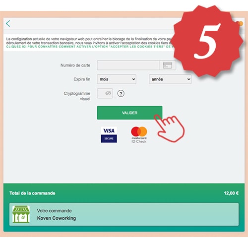 5. Je procède au paiement des 10€ht soit 12€ttc.