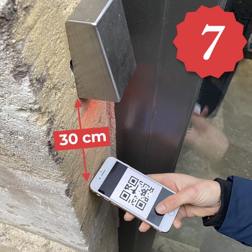 Astuce: Pour une meilleure lecture du QRcode par le lecteur, réglez la luminosité de votre téléphone au maximum et placez le à environ 30 cm du lecteur.